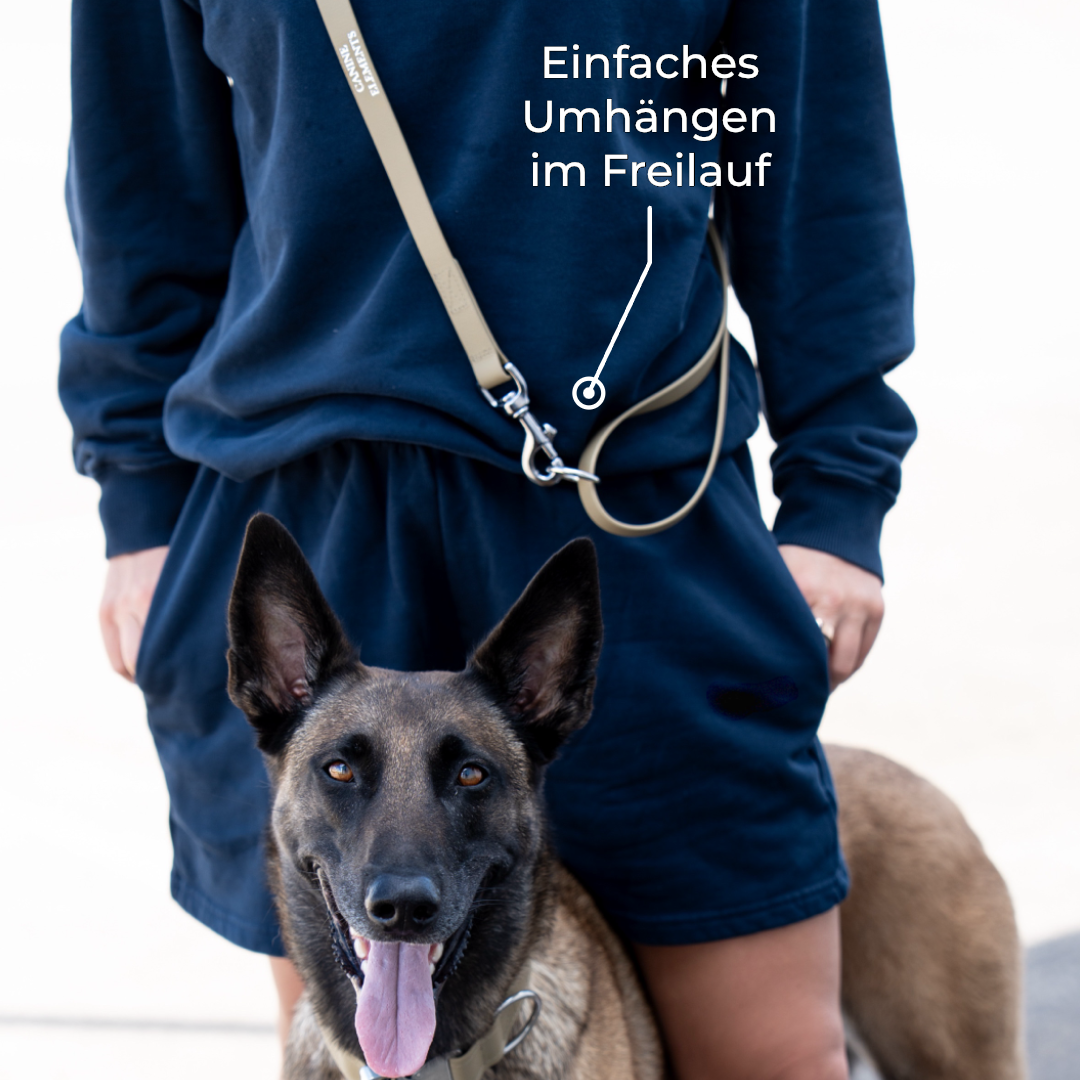 - praktisch im Freilauf: lässt sich leicht über die Schulter hängen, wenn der Hund in Freifolge ist