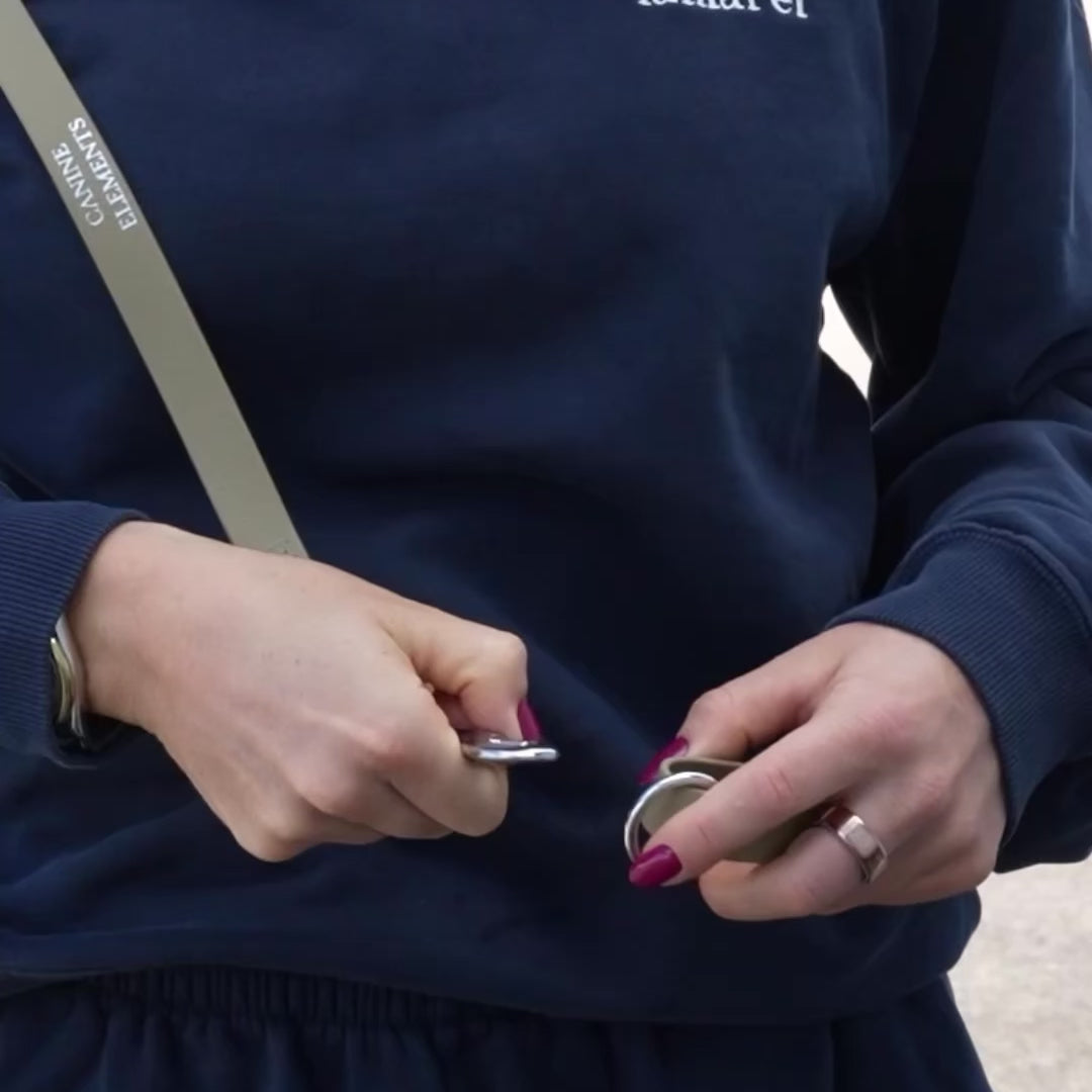 Durch die Länge super handlich und wenn man sie grade nicht am Hund hat, praktisch quer über die Schulter zu hängen und am Ring zu schließen. So hat man die Hände frei.