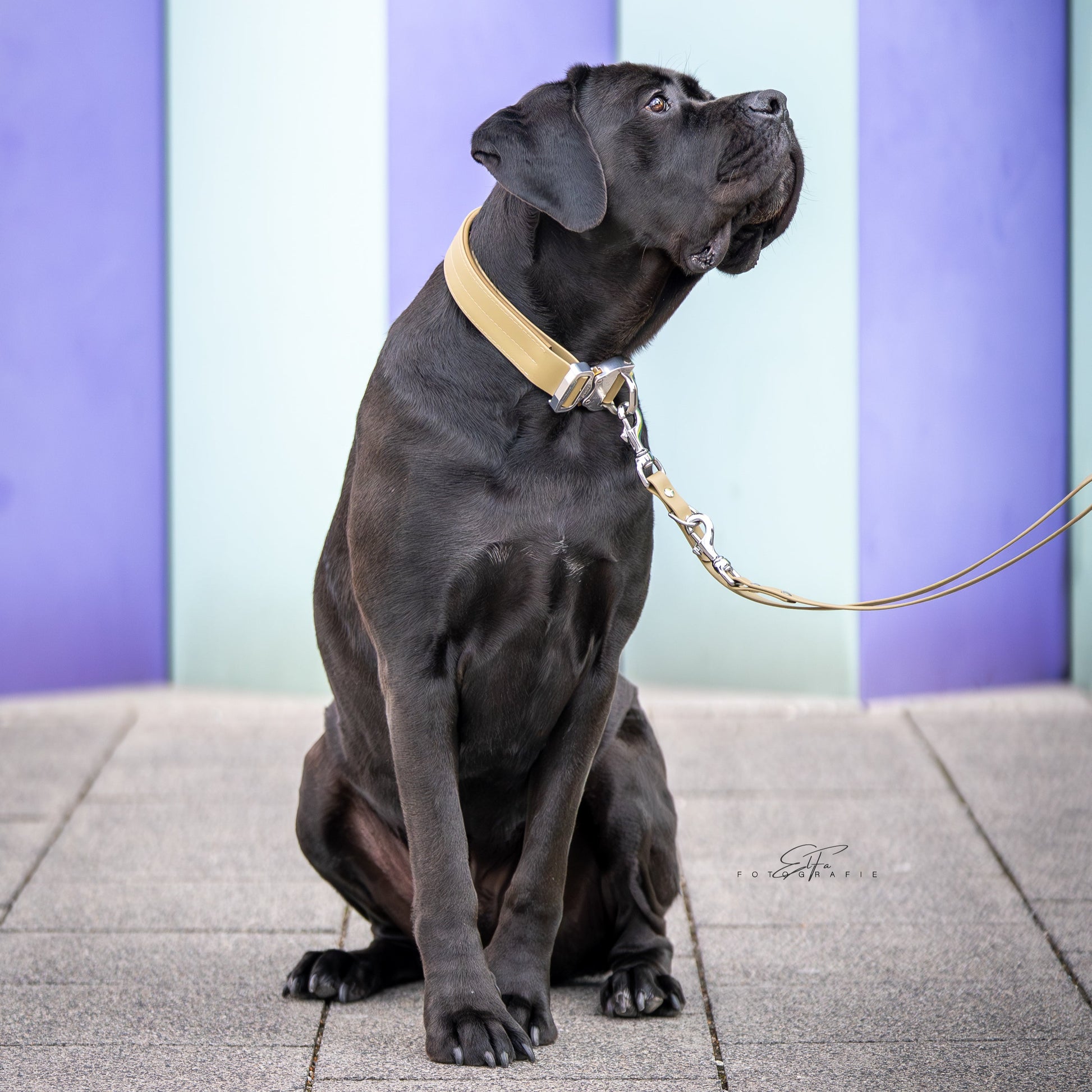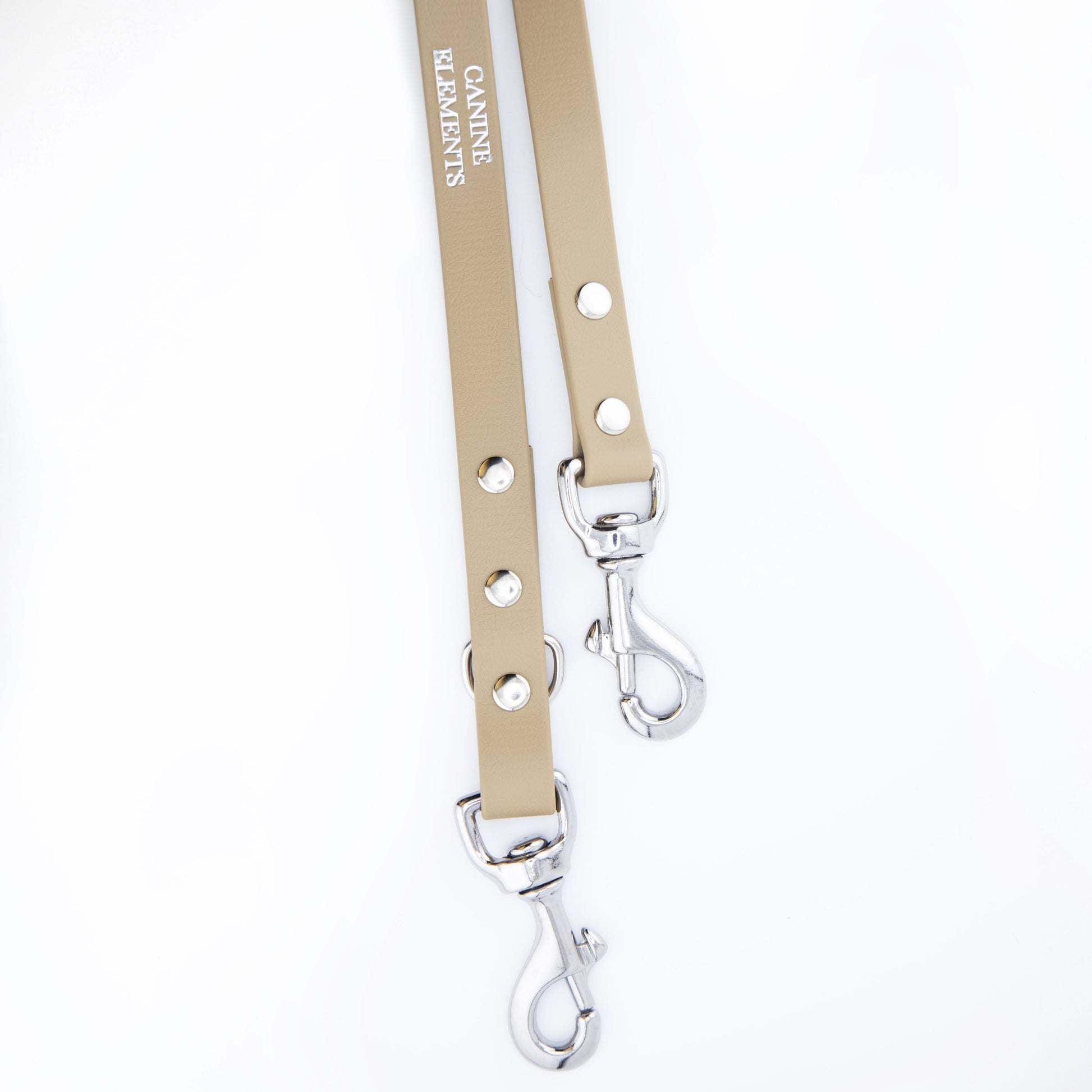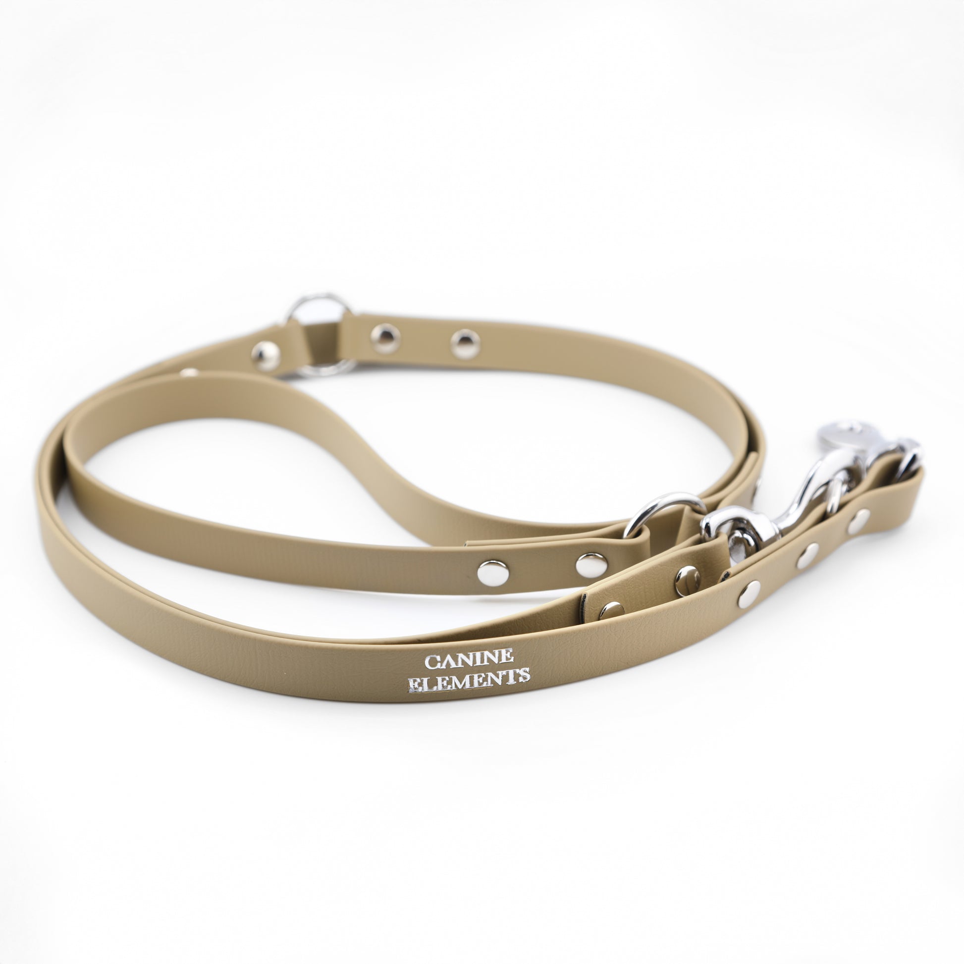 Canine Elements Pro è realizzato in Beta BioThane®, un'alternativa vegana al guinzaglio in pelle. Grazie alle proprietà di questo materiale, è anche molto più resistente all'abrasione , durevole e duraturo rispetto a un guinzaglio in pelle.