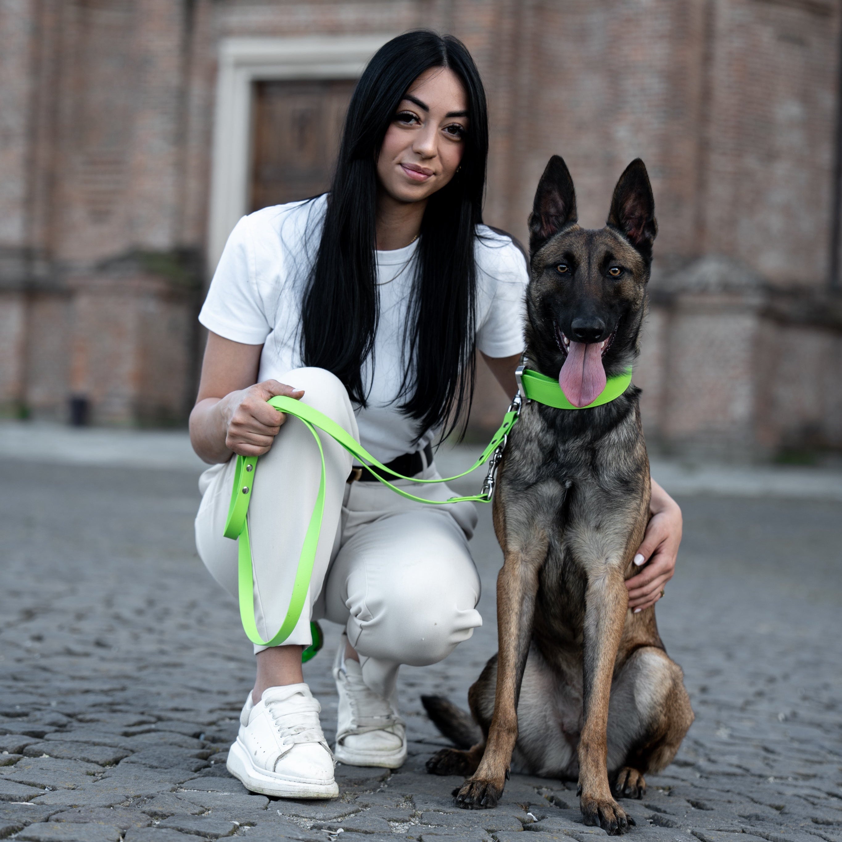 Deshalb müssen ein Halsband und eine Hundeleine also auch funktional sein und den täglichen Anforderungen stand halten. Unsere Produkte sind durch ausgewählte Materialien wie BioThane® oder Neopren wasser- und schmutzabweisend und lassen sich ganz einfach reinigen.