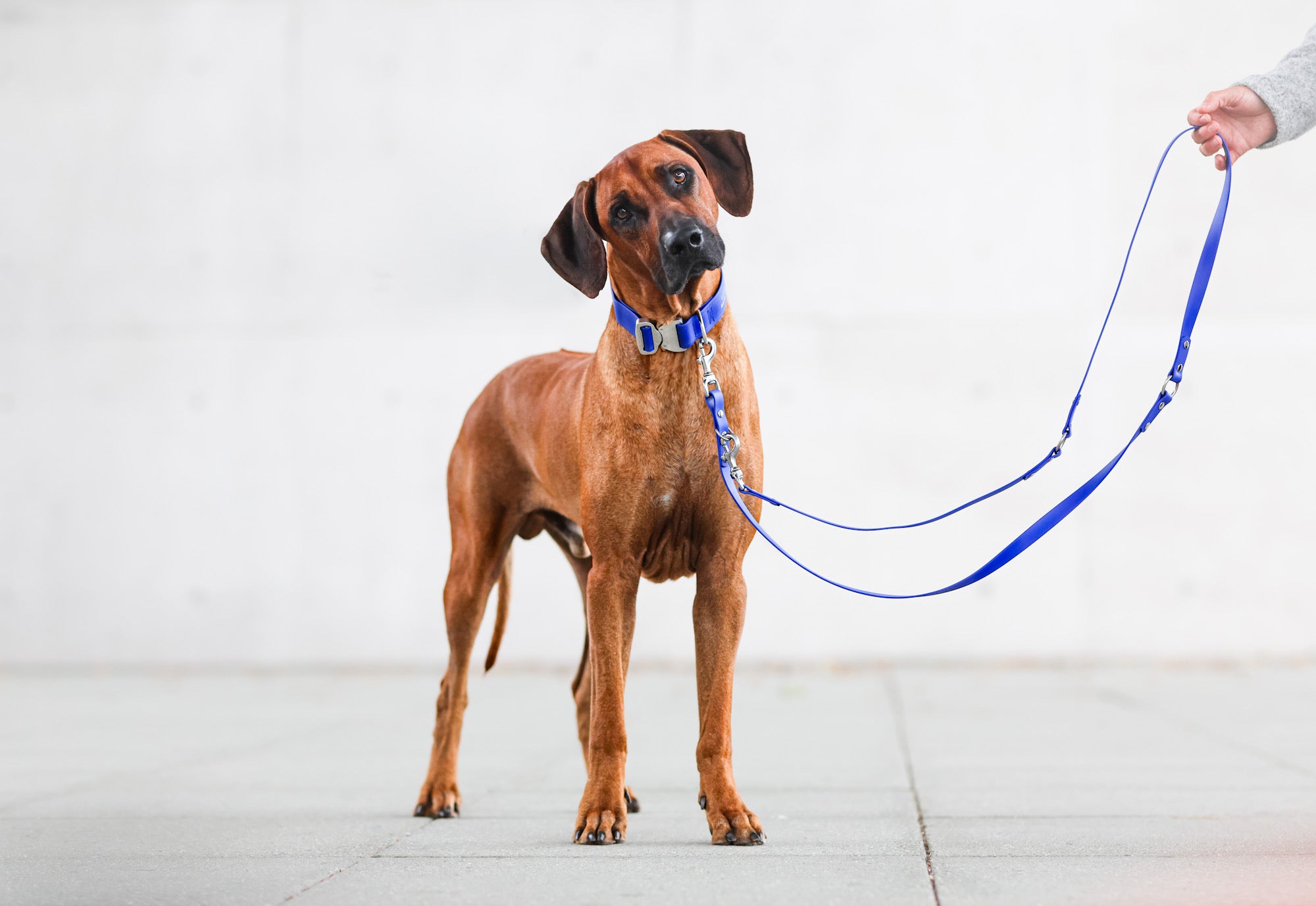 Deshalb müssen ein Halsband und eine Hundeleine also auch funktional sein und den täglichen Anforderungen stand halten. Unsere Produkte sind durch ausgewählte Materialien wie BioThane® oder Neopren wasser- und schmutzabweisend und lassen sich ganz einfach reinigen.